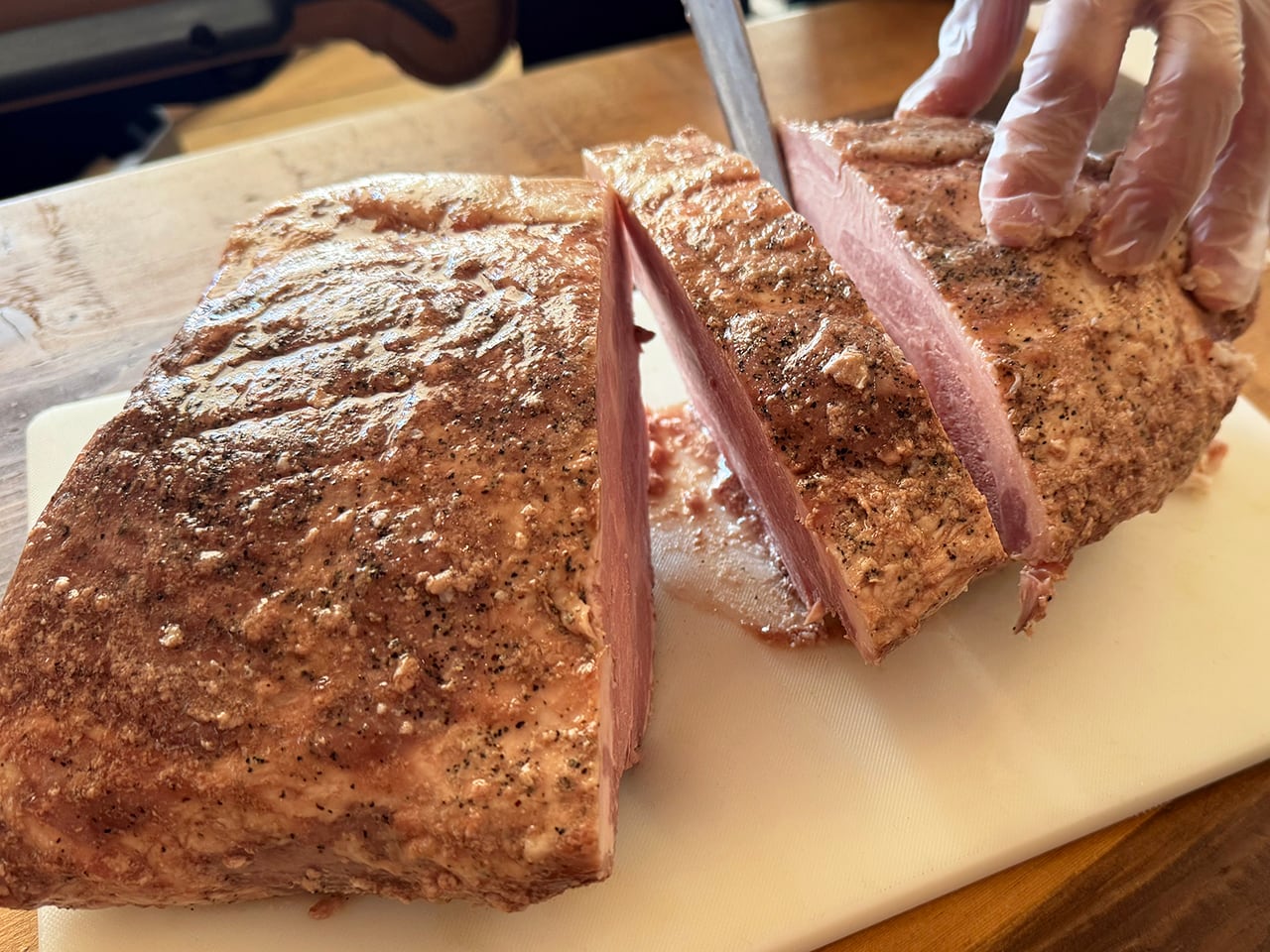 低温でゆっくり加熱しているため、肉本来の自然な赤みが残ることがあります。